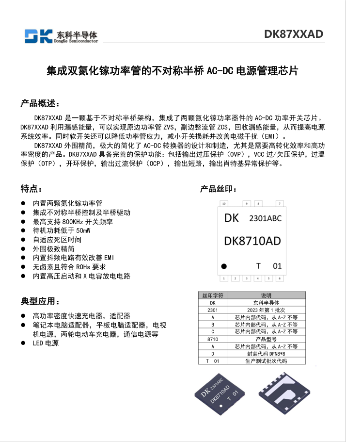 東科半導(dǎo)體(安徽)股份有限公司是國(guó)內(nèi)為數(shù)不多的集研發(fā)、設(shè)計(jì)、生產(chǎn)、銷售為一體的集成電路科技創(chuàng)新型企業(yè),是國(guó)家級(jí)專精特新小巨人企業(yè),2022年榮獲安徽省專精特新50強(qiáng)企業(yè)。公司分別在青島、北京、無(wú)錫、馬鞍山、深圳設(shè)立有5個(gè)研發(fā)中心,一個(gè)封測(cè)基地。公司采用市場(chǎng)少有的“Fabless+封測(cè)”的經(jīng)營(yíng)模式,在具備自主芯片設(shè)計(jì)能力的同時(shí),擁有自主封測(cè)能力。公司產(chǎn)品主要方向是高性能模擬和數(shù)?;旌项愲娫垂芾硇酒?,第三代化合物半導(dǎo)體電源管理芯片和其他模擬類芯片。